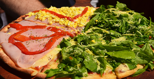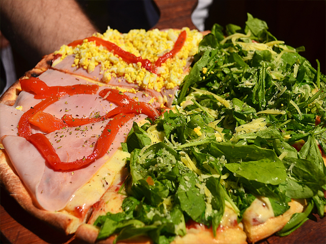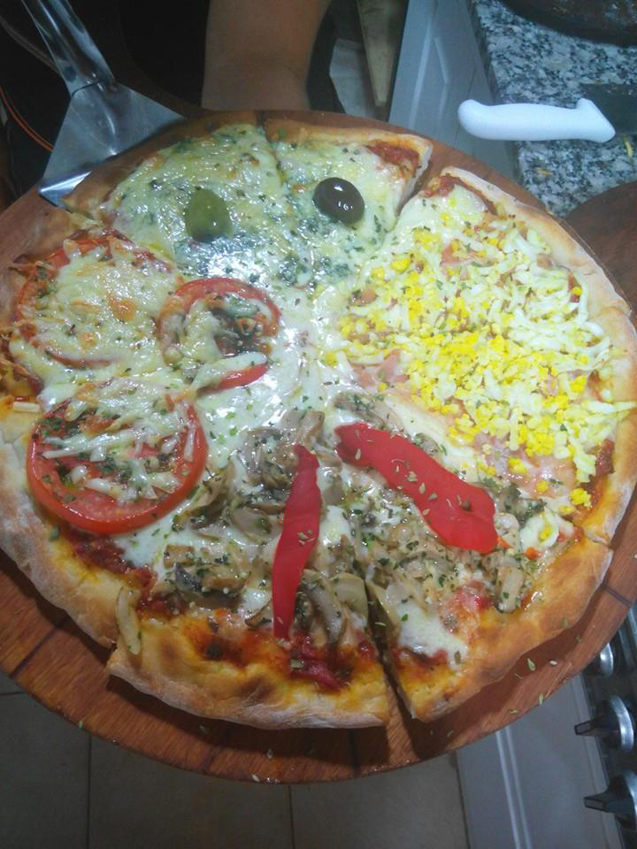 (Salsa de tomate, Muzzarella, Jamón, Huevo duro)