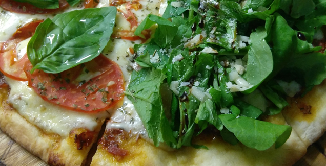 (Salsa de tomate, Muzzarella, Jamón crudo, Rúcula, Escamas de Parmesano)