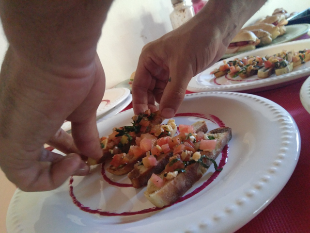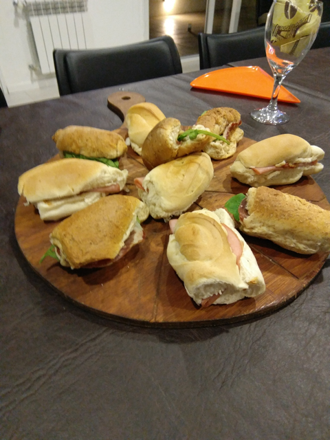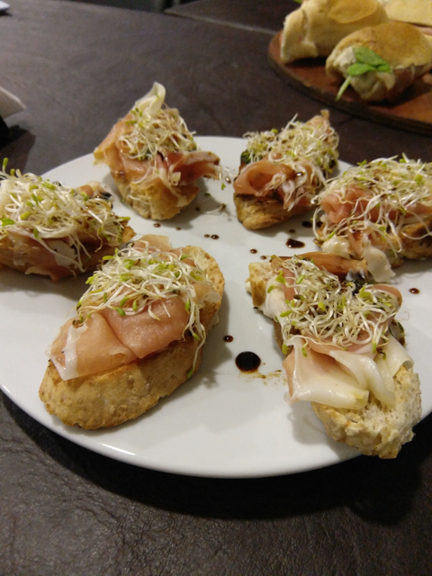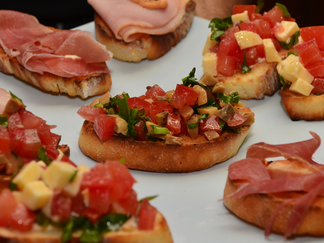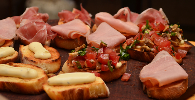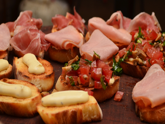 Bruschetas de Jamón Crudo y Tomate + Nachos con Guacamole + Montadito de Tortilla y Chorizo + Sandwichitos Gourmet + Papas Rústicas con Salsa de Quesos + Empanaditas.