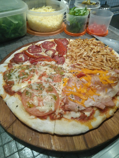 (Salsa de tomate, Muzzarella, Salchicha, Papas pay)